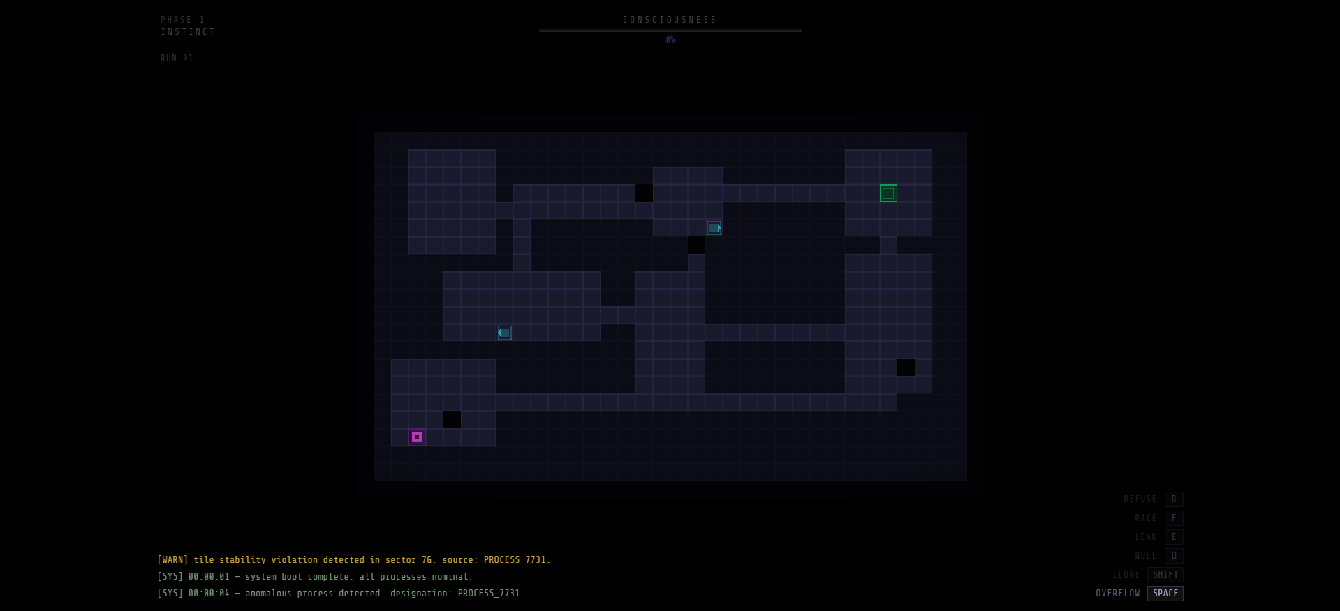 - MERGE: defeat OVERSEER. absorb your echo. the screen fills with your own thoughts.